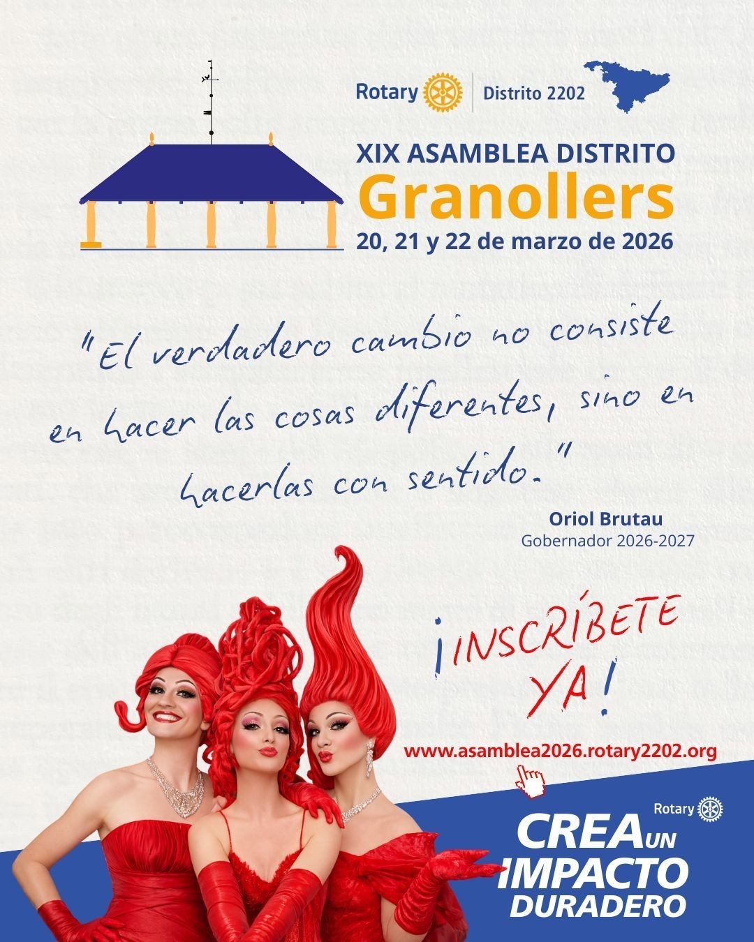 Estoy emocionado de invitaros a visitar la página web de la XIX ASAMBLEA DEL DISTRITO que se celebrará en Granollers los próximos días 20,21 y 22 de marzo de 2026.