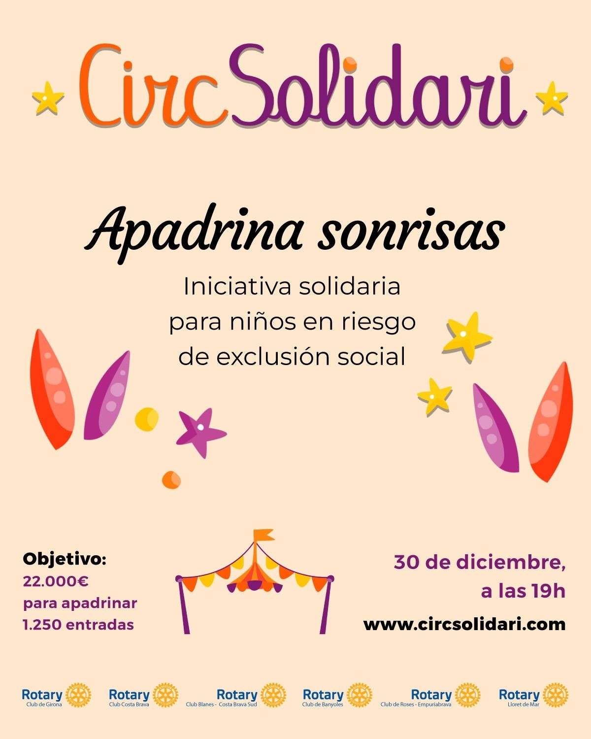 Este año, varios Rotary Clubs de nuestra zona están apoyando el Circo Solidario, con el objetivo de recaudar 22.000€ para llevar a 1.250 niños en riesgo de exclusión social a disfrutar de una sesión del Gran Circo de Navidad de Girona