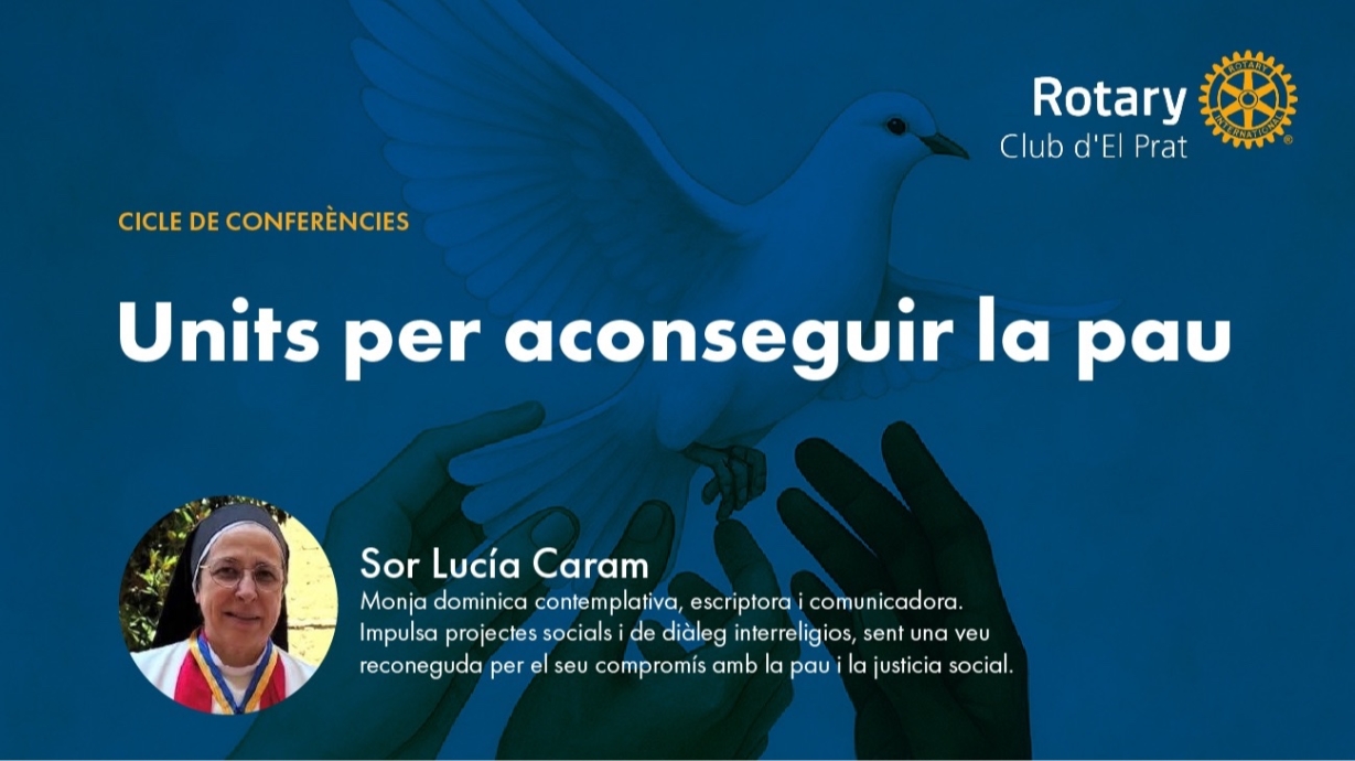 El pasado jueves, 16 de octubre, organizada por el Rotary Club d'El Prat, se celebró en el Centro Cívico "Palmira Domènech" de El Prat la primera conferencia de este año rotario. El título de la conferencia, "Unidos para conseguir la Paz', se consideró muy apropiado porque está relacionado con el lema de Rotary Internacional en este año 2025/2026, "Unidos para hacer el bien", pues no cabe ninguna duda que trabajar por la Paz en el mundo es una manera de hacer el bien.