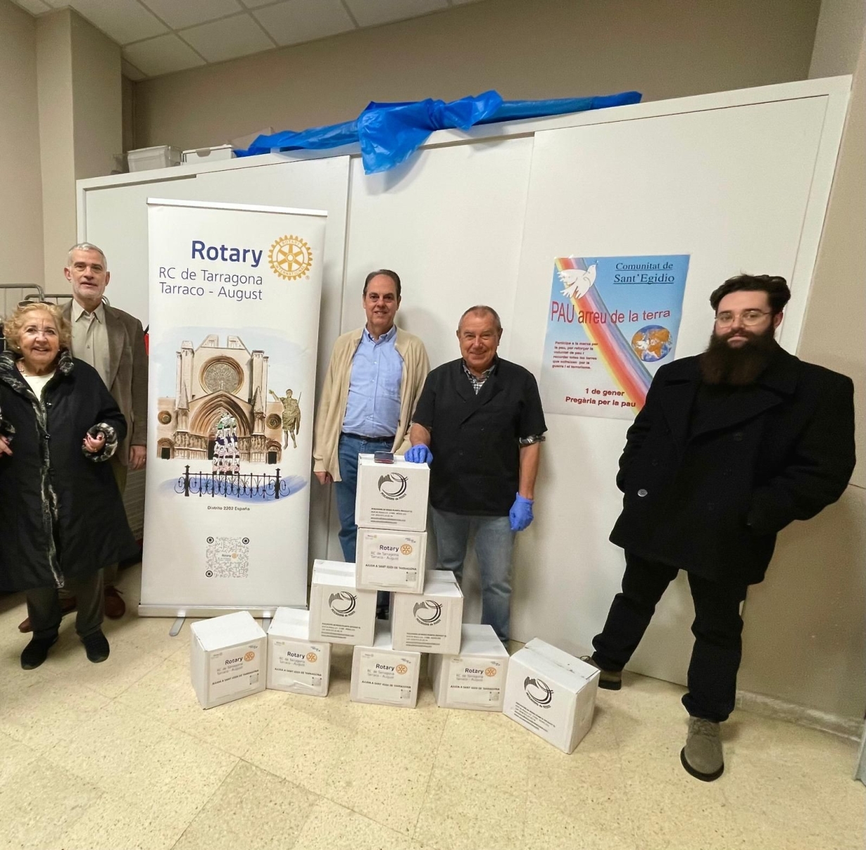 Aquest dimarts 13/01/2026 el Club Rotary de Tarragona Tarraco August ha fet entrega de la donacio del Sr. Pere Gotanegre de la Confraria de Pescadors de Roses, de 80 litres de brou de peix concentrat al menjador social de la Comunitat de Sant Igidi de Tarragona.